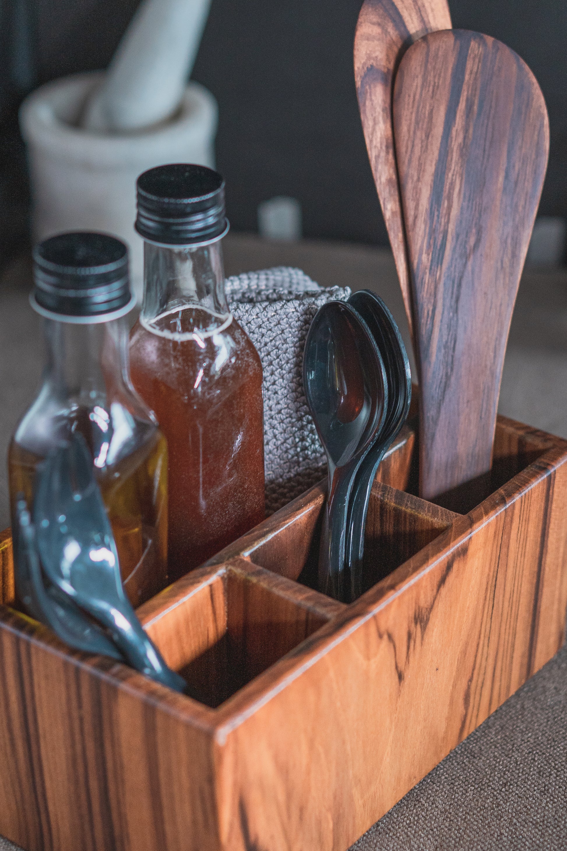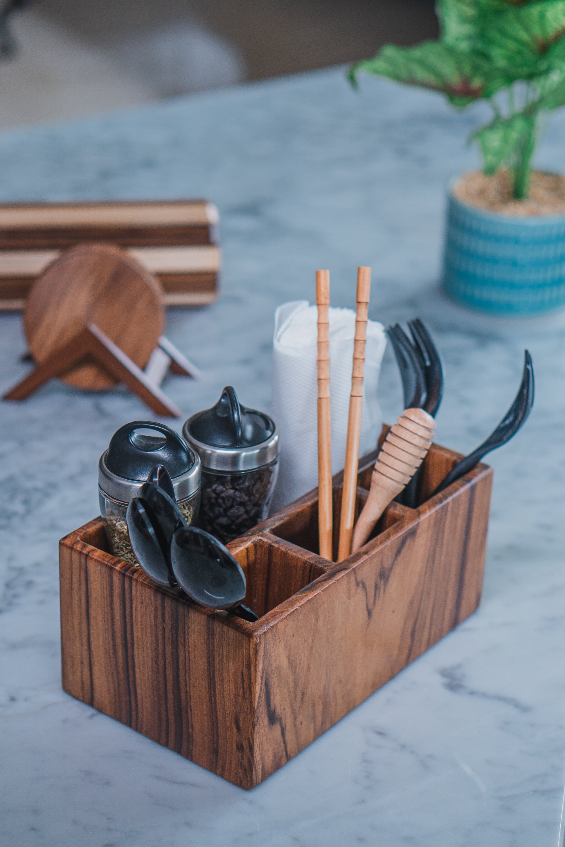 - Keeps your kitchen utensils and cutlery neatly organized and within reach.