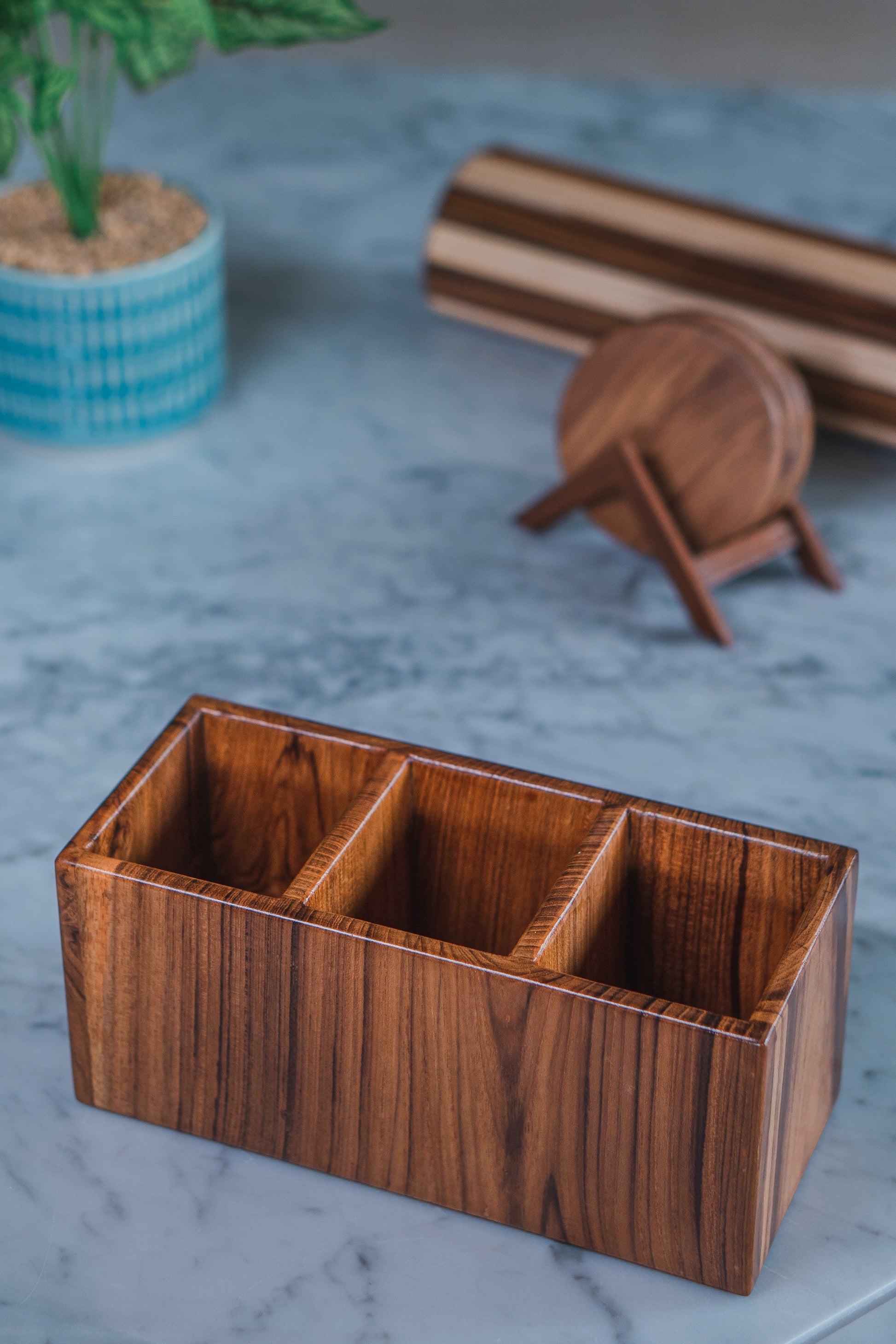 Enhance your kitchen and dining organization with the Cutlery Holder (Large), a beautifully handcrafted 3-compartment wooden stand made in India from high-quality Teak Wood. Designed for versatility and style, this stand is perfect for storing cutlery, utensils, stationery, and more while adding a timeless charm to your space.