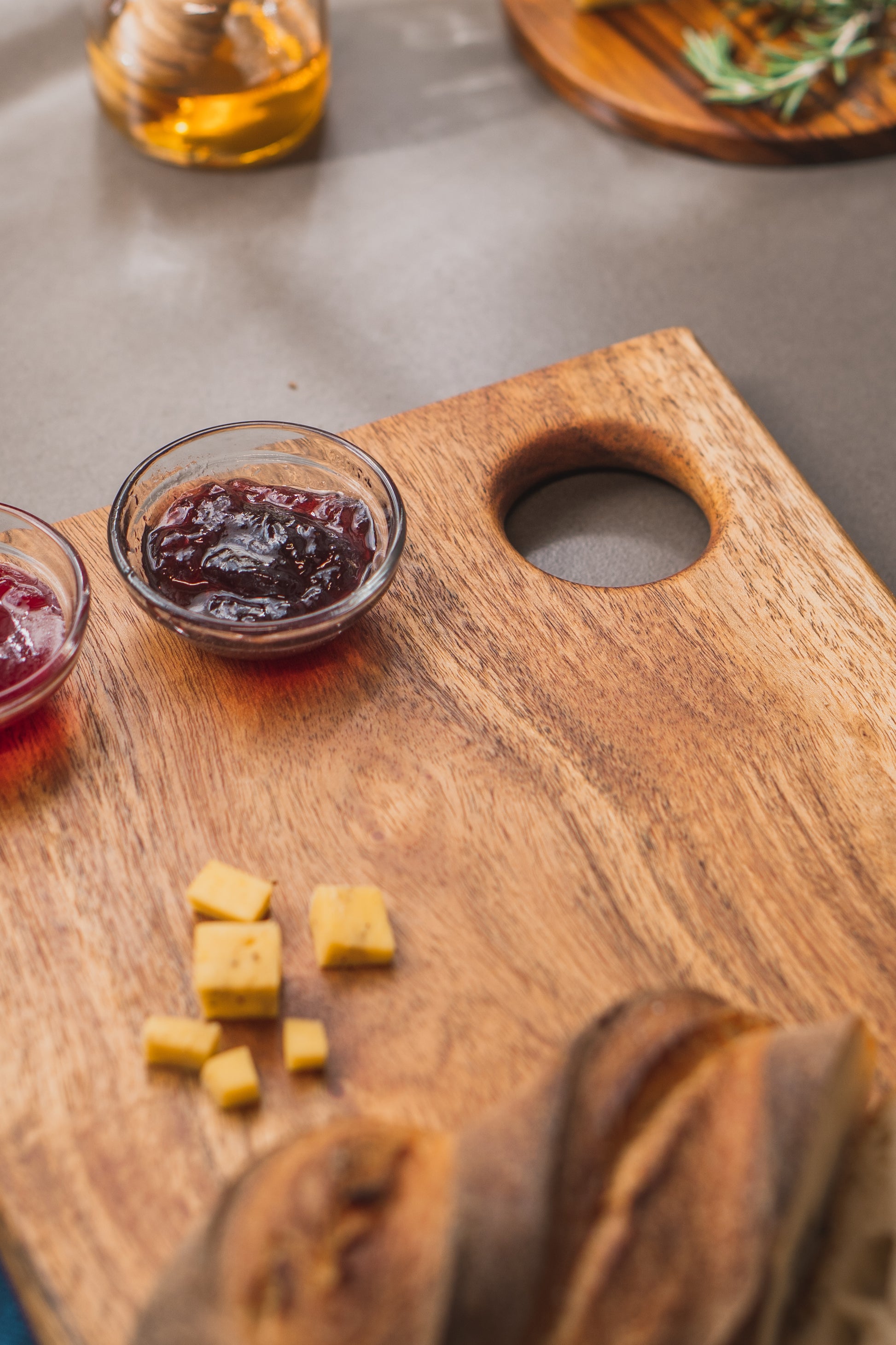 - Apply food-grade mineral oil occasionally to maintain the board's luster and prevent cracking.